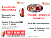 Am Freitag, 5. Dezember 2025 besteht die Möglichkeit, Feuerlöscher durch die Fa. Terza Schulnig im Feuerwehrhaus Eidenberg überprüfen zu lassen.
