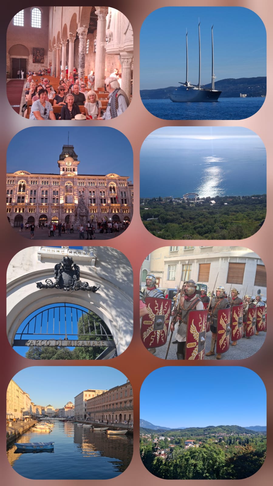 Der zweite Tag begann mit einem Stadtrundgang durch Triest, vorbei an der Kathedrale San Giusto bis zur Burg. Danach fuhren wir bei herrlichem Wetter zum Schloss Miramare, das wir mit Audioguides auf eigene Faust erkundeten. Der Park direkt am Meer war ein Highlight.