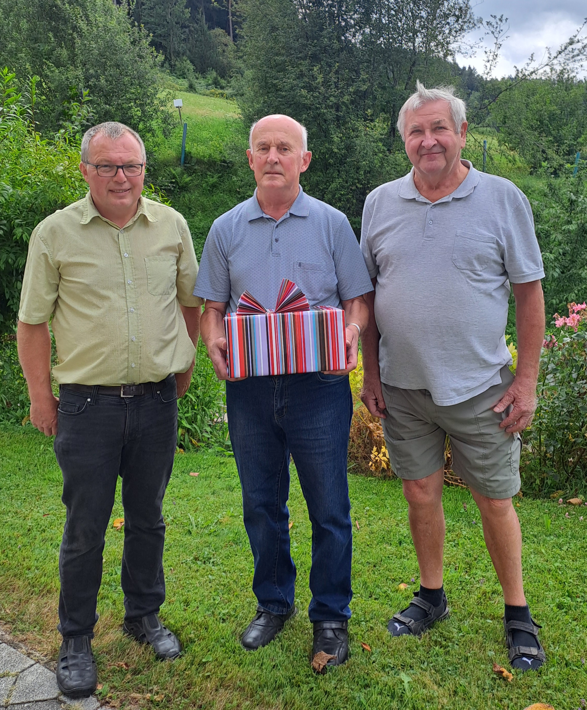 Robert Maureder aus Schiefegg, Gemeinde Eidenberg feierte seinen 80er. Dem rüstigen Jubilar überbrachten der Bürgermeister und der Seniorenbundobmann die besten Glückwünsche.