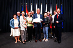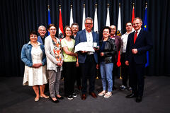 Mit großer Aufregung warteten wir auf den Aufruf von Otto. Landeshauptmann Dr. Thomas Stelzer fand sehr würdigende und einfühlsame Worte für ihn. Er hob die zahlreichen Erfolge hervor, die während Ottos Amtszeit erzielt wurden: eine Ausleihzahl von beeindruckenden 28.000 Medien, die Auszeichnung der Bibliothek als beliebteste Bibliothek OÖ und viele herausragende Lesungen, um nur einige zu nennen.